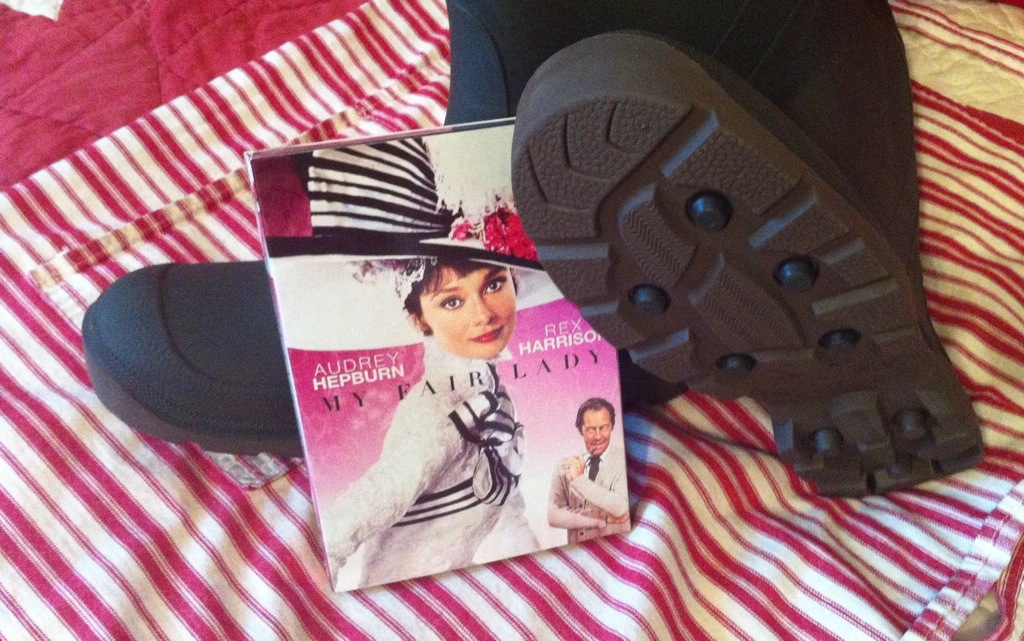 Which brings me to our Best Valentine’s Gift Exchange EVER – he got Muck Boots, I got My Fair Lady – Romance doesn’t get any better than that. After delivering babies, and making several more trips to check on the other goats who are due to deliver any moment, he even sat with me and the boys and watched some of it.